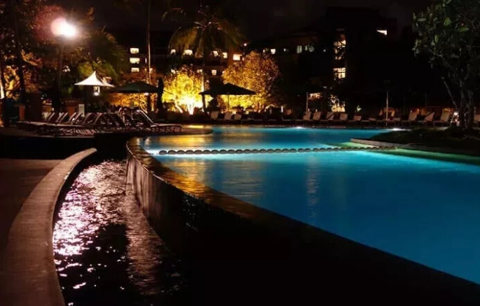 原理:無(wú)邊泳池的邊在水面以下,水池背面加落水槽,水漫過(guò)泳池邊流向落水槽,落水槽收集池水至底部的集水池,集水池將水過(guò)濾后重新輸入泳池。同時(shí),為了讓水在視覺(jué)上是鋪滿的,邊界有一個(gè)向里的坡度,視覺(jué)上,我們看到的是靜止?fàn)顟B(tài),感覺(jué)是無(wú)邊緣的,然而背后落水槽的池邊,當(dāng)水面不處于靜止,池邊的水流還會(huì)像嘩啦啦的瀑布一樣流到集水池。